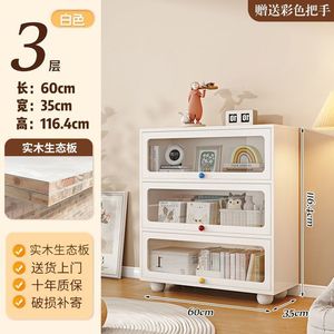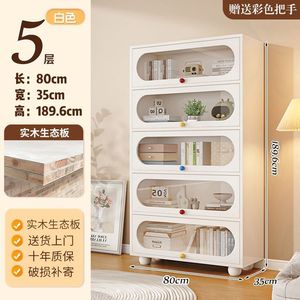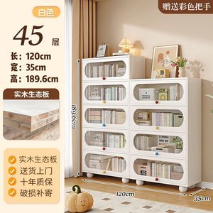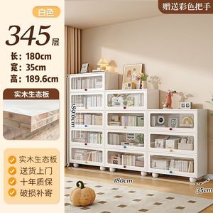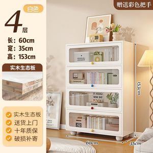 实木书架落地置物架带玻璃门奶油风书柜防尘储物柜子组合客厅家用
