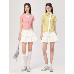 BZXO デザインニッチレースケーキスカート女性の夏の新しい甘い多用途 A ラインショートスカートプリーツスカート