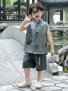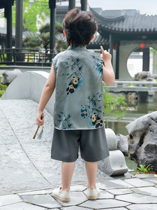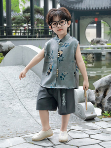 夏の漢服スーツ 2025 新しい男の子の古代衣装ショーツ子供唐装夏服ベビー新中国風のノースリーブトレンド