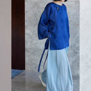 中国風のブルーシャツ中国風長袖デザイントップ2025新しいシャツ禅気質中国風トップ