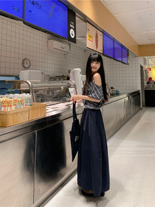 甘くてクールなホットガールスタイルの斜め肩ストライプ Tシャツリラックスした花のつぼみスカート 2025 夏の新しいファッションスーツ女性のための