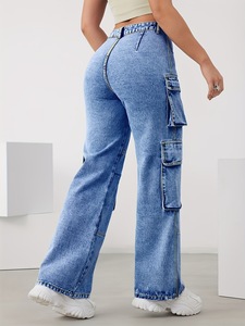 レディース ハイウエスト カーゴ デニム ジーンズ マルチ ポケット ストレッチ