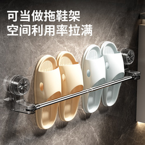吸盘毛巾架卫生间免打孔浴室伸缩毛巾杆置物架洗手间浴巾收纳挂架