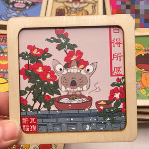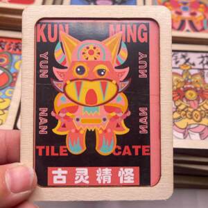 雲南省大理木製瓦猫磁石冷蔵庫マグネット民族風文化創意ギフトお土産磁気中国風