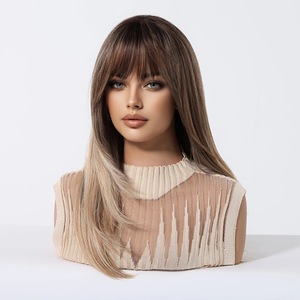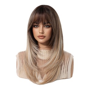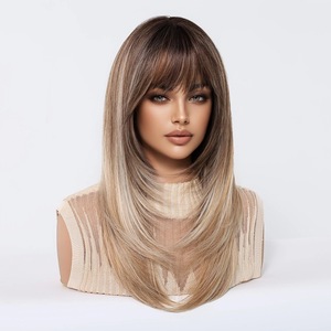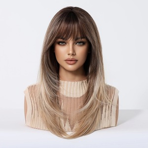 クロスボーダーウィッグブラウングラデーション前髪オーバーヘッド染めレイヤードロングストレートヘアヨーロッパとアメリカの売れ筋ウィッグ卸売在庫あり