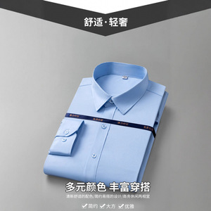 商务休闲衬衫衬衣长袖四面谈抗皱免烫好打理工厂批发跨境抗皱耐磨