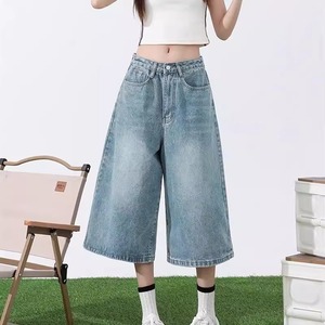 レトロ大きいサイズデニムクロップドパンツ女性のための夏の 2025 新しい薄いルーズハイウエストライトカラーストレートワイドレッグパンツ