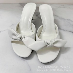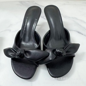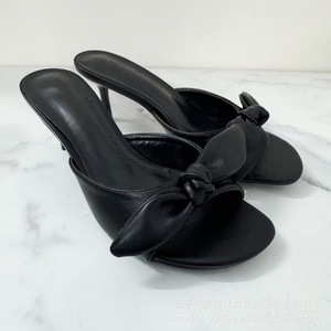 ZA フレンチフィッシュマウスハイヒール 2025 夏新ブラウンリボンサンダルオープントゥサンダル女性のスティレットヒール