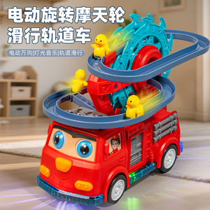 小さなアヒルは階段を登って回転観覧車を滑走軌道を自動的に障害物を避ける子供用電動ユニバーサル消防車のおもちゃ