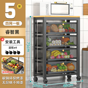 厨房菜篮子置物架家用移动落地式多层果蔬收纳筐多功能微波炉架子