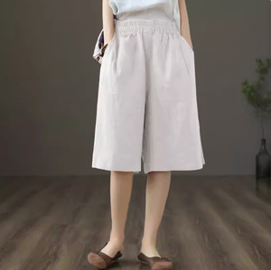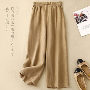 宽松百搭亚麻九分裤夏季新款休闲显瘦直筒裤薄款盘扣棉麻阔腿裤女