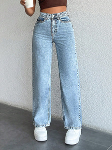 クロスボーダー Amazon AliExpress 外国貿易ジーンズ女性の 2025 新しいハイウエストストレートルーズカジュアルロングパンツ