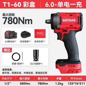 Rotake 電動レンチ T1 780N 1/2 大トルクブラシレス電動レンチ