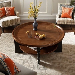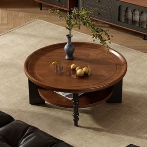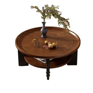 フレンチレトロスタイルアンティークコーヒーテーブルラウンド無垢材中国アメリカンスタイル小さなアパートティーテーブルルビーティーテーブルリビングルーム