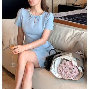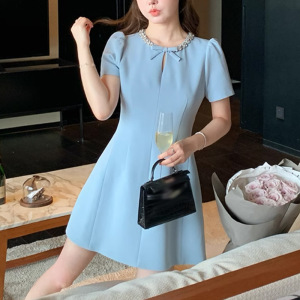 重工業ドリルカラーゴールドスタイルドレスレディースウエストハイJI感バースデーギフトドレスショートスカート小香風
