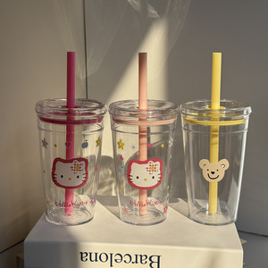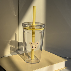 新しいかわいい漫画のコーヒーカップ、見栄えの良い、高温耐性、蓋付きストローカップ、学生オフィスホームプラスチックカップ