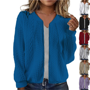 Amazon 2025 ヨーロッパとアメリカの秋冬の新スタイルジッパートリコタージュ長袖スウェットシャツジャケット野球ユニフォームクロスボーダー婦人服在庫あり