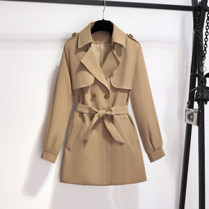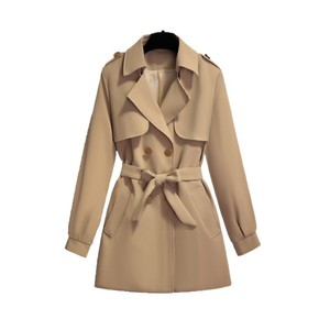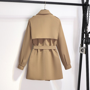 小柄なトレンチコート、フェミニンでファッショナブルなレースアップ春秋高級カーキ英国風ミドル丈コート