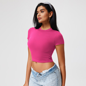 クロスボーダー多用途フィットネストップス、女性用夏スポーツ高弾性痩身へそ露出ハイエンドピラティスヨガトップス