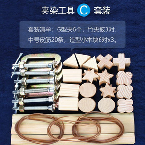 手作り絞り染め DIY 材料体験パッケージ クリップ染めツールセット G タイプクリップ幾何学的な小さな木製ブロック竹合板ゴムバンド