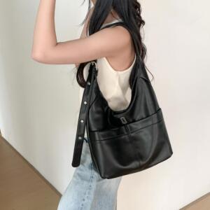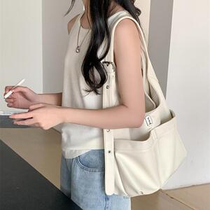 カレッジスタイルソフトレザートートバッグカジュアルシンプル多用途韓国インショルダーバッグレディース大容量通勤バッグ