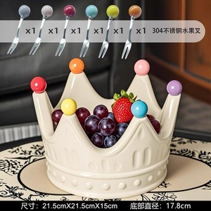軽くて豪華で絶妙な王冠の形をしたセラミックフルーツプレート、ホームリビングルームのコーヒーテーブル、スナック収納ボックス、フルーツフォーク付きフルーツプレート
