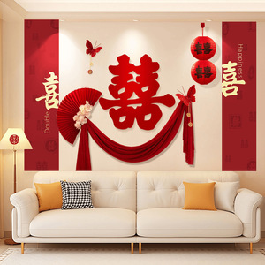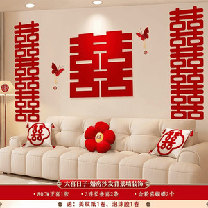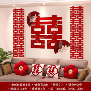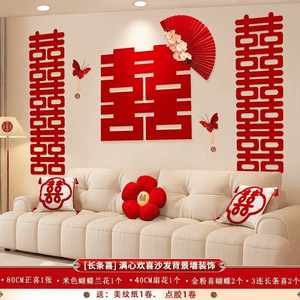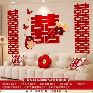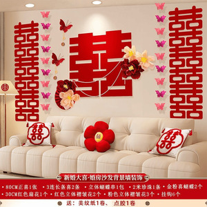 结婚客厅新婚布置婚房沙发背景墙拉花套装男女方装饰婚庆用品大全