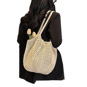 レイジートート新しい海辺ビーチショルダーバッグ脇の下綿糸大容量休暇織バッグ海辺ビーチ