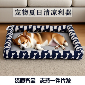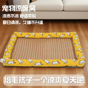 ペットアイスマット、オールシーズン万能犬小屋マット、滑り止め、耐摩耗性リネンスクエア犬小屋籐マット卸売