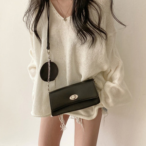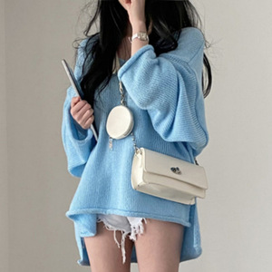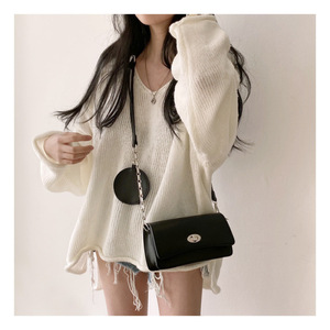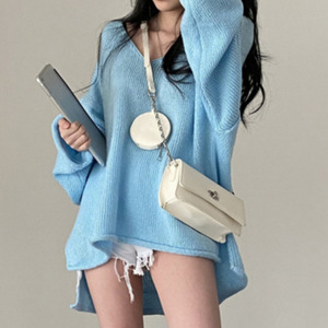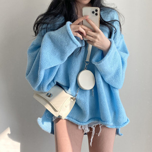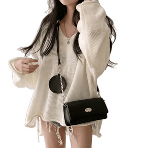 韓国シックな春の新しいレトロなルーズレイジースタイルVネックカールスリットファッションプルオーバー年齢を減らす女性用セーター