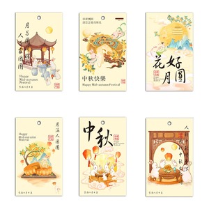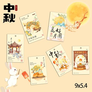 中秋節ウサギハングカードかわいい月ウサギグリーティングカードタグペンダント漫画手描きウサギグリーティングカード