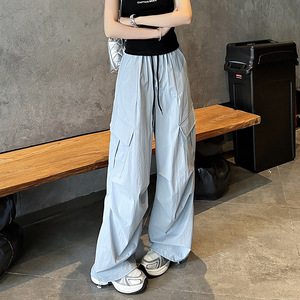 夏の大きなポケット速乾性オーバーオール女性のための 2025 新しいツーウェア薄いアイスシルク空挺部隊屋外アメリカンスポーツパンツ