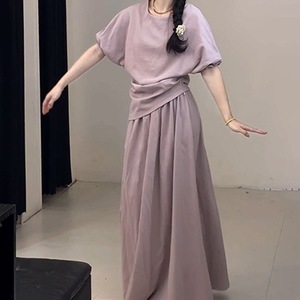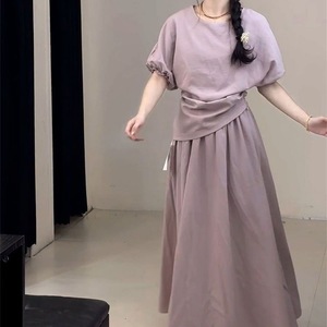 女性のためのハイエンドの小さな紫色のドレス夏 2025 新しい夏のリラックスしたウェアスーツロングスカート