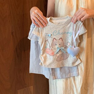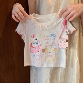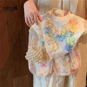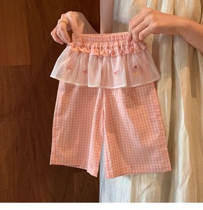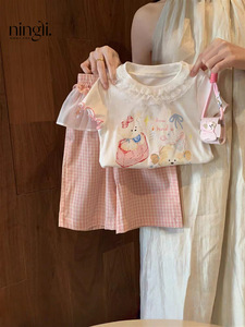 Ningli 女の子のファッショナブルで甘いスーツ夏 2025 新しいスタイルの小さな女の子ベビー半袖ワイドレッグパンツ 2 点セットトレンディ