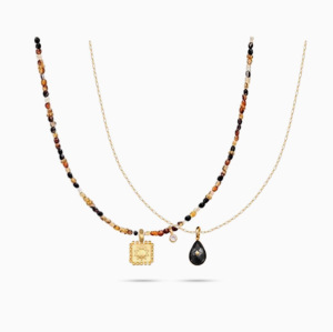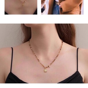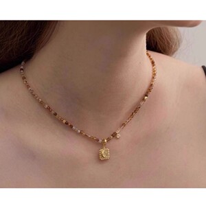 2025 新しい妻のロマンチックな旅行 Qi Wei の同じスタイルの星と月の瑪瑙ビーズネックレス女性の積み重ね可能な鎖骨チェーン