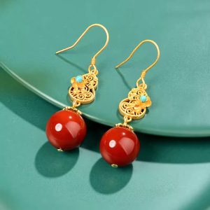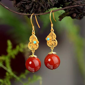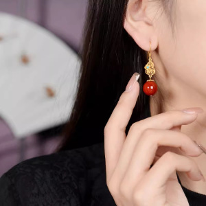レトロなひょうたんフィリグリーイヤリング、ラウンドビーズイヤリング、新しい中国風のロングレッドイヤリング、絶妙なハイエンドイヤリング