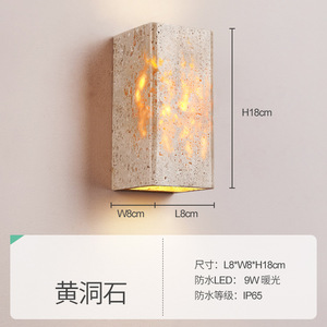 イエローホールストーン和風わびさびスタイル寝室ベッドサイドウォールランプB&B屋外中庭クリームバルコニー屋外防水ウォールランプ
