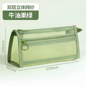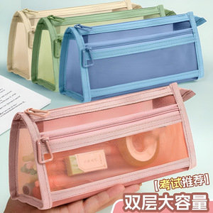 二層立体透明メッシュ鉛筆バッグ、試験専用大容量ジッパーバッグ、学生鉛筆バッグ収納メッシュバッグ