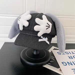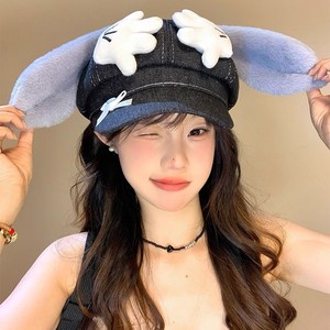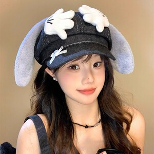 かわいいミッキーパーム長耳カウボーイ八角形帽子女性用新しい大きな頭囲多用途帽子顔見せベレー帽
