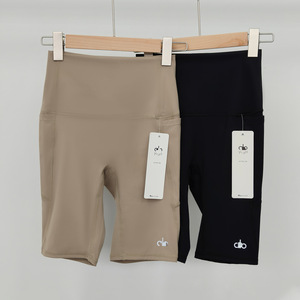 aloと同じスタイルのスポーツショーツ、女性用ハイウエスト、お腹を引き締める伸縮性のあるランニング速乾フィットネストレーニングヨガ用五分丈レギンス