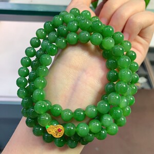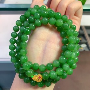 天然和田玉碧玉108颗项链 搭配 18k金福禄果阳绿高品质贵妇人颈饰