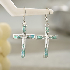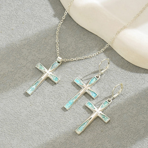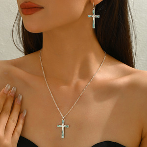 TEMU クロスボーダー新レトロファッション信仰クロスシェルペンダントネックレスイヤリングセットニッチハイ