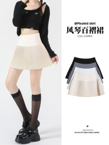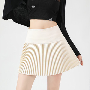 アプリコットアコーディオンプリーツスカートレディース2025夏新作ハイウエストスリム小柄カジュアルAラインスカートショートスカート