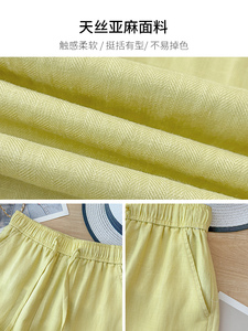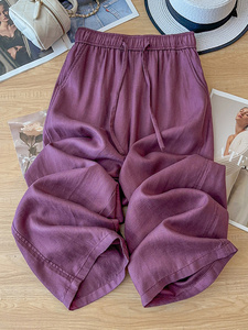 イエローテンセルリネンワイドレッグパンツ女性の夏薄い 2025 新しいハイウエストドレープコットンとリネン 9 点ストレートパンツ
