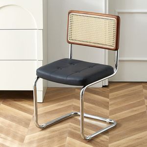 藤编椅子北欧实木家用设计师餐椅中古椅网红咖啡厅酒店休闲ins椅