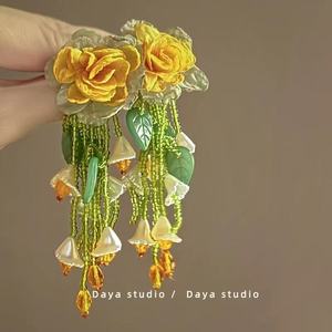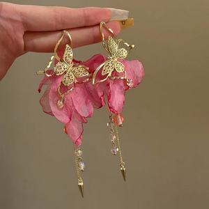 スーパーフェアリーフラワータッセルイヤリング、ニッチなデザイン、シンプル、ファッショナブル、絶妙、甘い個性、多用途のホリデースタイルイヤリング