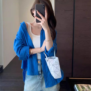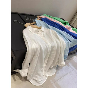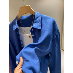 25 夏の怠惰なスタイルのファッションカジュアルコットンとリネン日焼け止め長袖シャツ女性のためのルーズ痩身通気性リネン薄手のシャツ