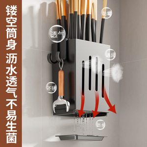 免打孔厨房置物架筷子收纳盒壁挂式筷笼筷子笼家用沥水勺子筷子筒