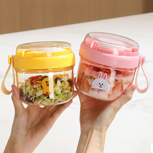 ワンピース発送 ポータブル学生用朝食カップ 高品質フルーツサラダカップ 密閉漏れ防止ミルクカップ 蓋とスプーン付き
