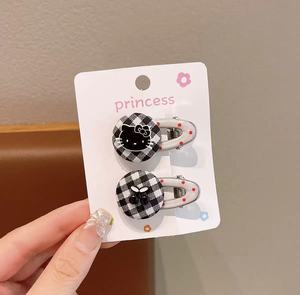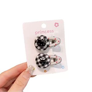 子供のかわいい猫チェック柄ボールヘアピン女の子プリンセスサイドヘア前髪クリップ漫画ヘアピントレンディ